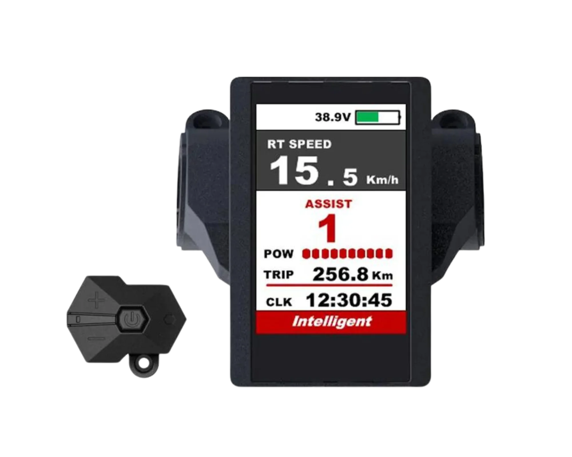 TFT-display voor vae elektrificatieset geschikt voor sturen met diameters van 22,2 mm tot 31,8 mm / Afstandsknop alleen geschikt voor 22, 2 mm sturen. Geleverd met universele steun voor sturen en diameteradapters. U kunt ook een montageplaat op de vorkkop bestellen om het stuur vrij te maken. Hiermee kunt u tot 9 niveaus van elektrische ondersteuning regelen.