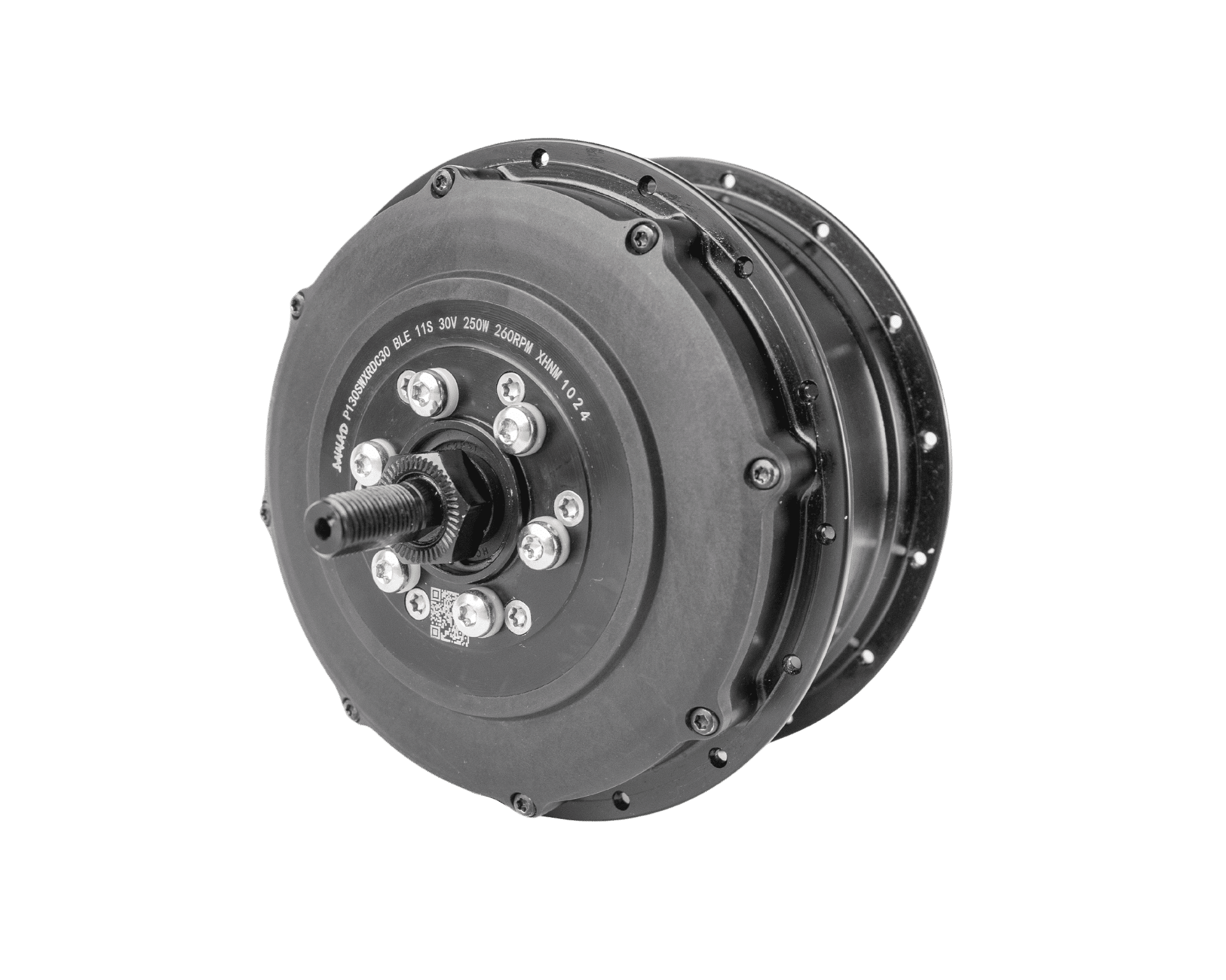 Een schijfremmotor voor het achterwiel met geïntegreerde batterij