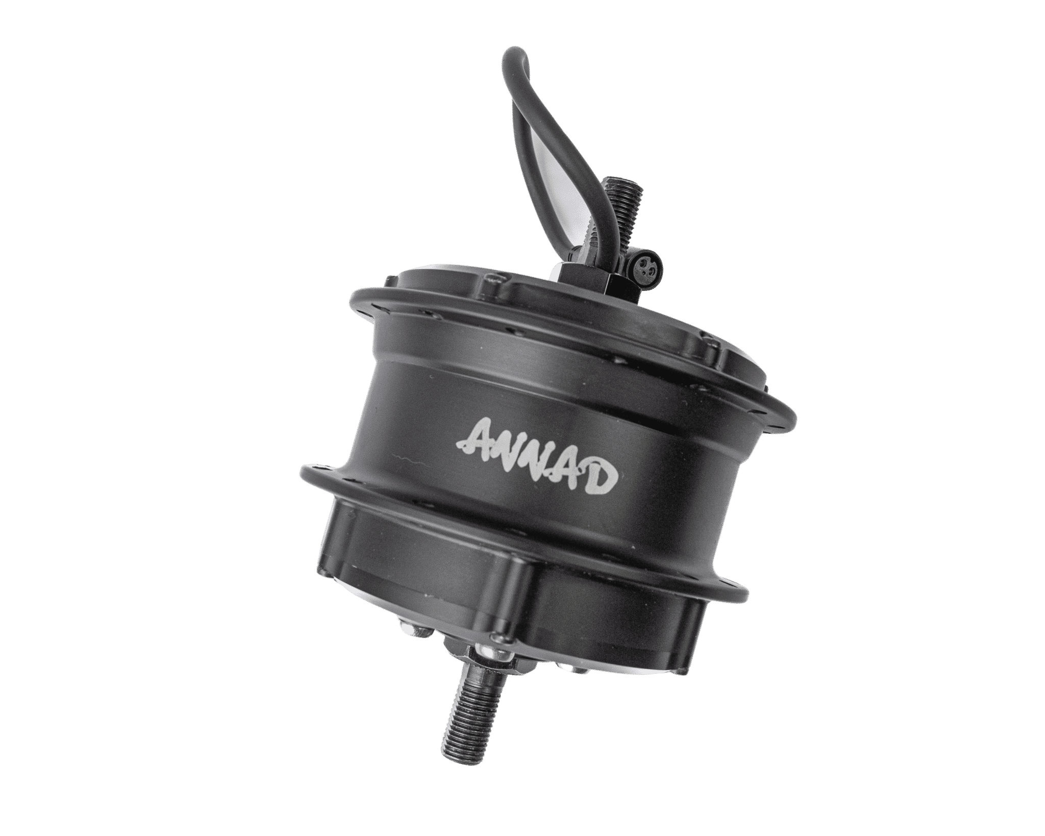 Met deze ultralichte voorwielmotor kunt u een modulaire elektrificatiekit samenstellen met een ruime keuze aan compatibele accu’s. De Bluetooth-bediening vermindert de hoeveelheid bedrading op uw fiets. Bediening van 5 ondersteuningsniveaus via de smartphonetoepassing Annad of het ANNAD Bluetooth-scherm, voor een snelheid van 25 km/u, in overeenstemming met de Europese norm [Bekijk de montagevideo van de kit]